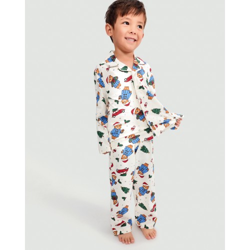 Paddington Bear 2-Piece Pure Cotton Christmas Shirt and Bottoms Pyjama Set in Multi