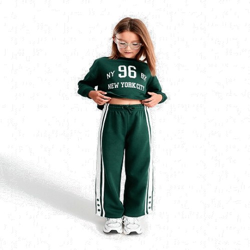 F&F Girls 2-Piece Cotton Rich New York City Sweatshirt and Joggers Set in Green