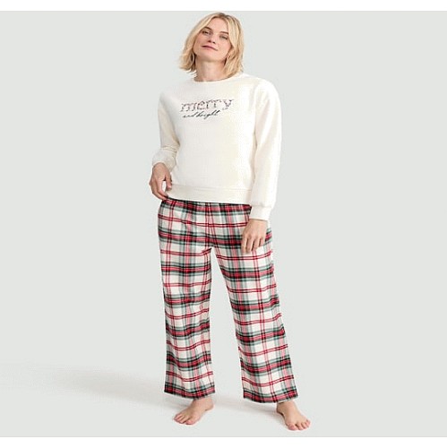 Cotton Rich Merry and Bright Sweatshirt and Trousers Pyjama Set in Green