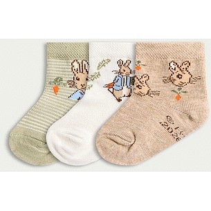 Peter Rabbit 3-Pack Cotton Blend Ankle Socks in Multi