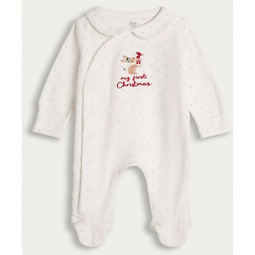 Cotton Rich My First Christmas Slogan Sleepsuit in White
