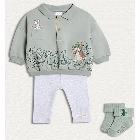 Peter Rabbit 3-Piece Cotton Rich Sweatshirt Legging and Socks Set in Green