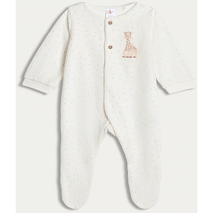 Sophie La Girafe Cotton Rich Ribbed Sleepsuit in Multi White