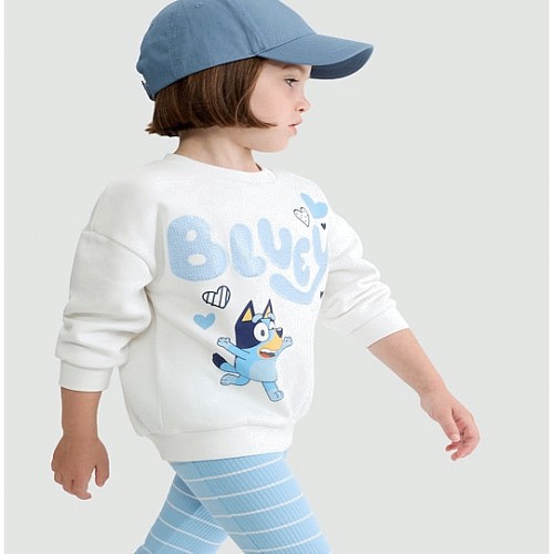 Bluey 2-Piece Cotton Rich Sweatshirt and Striped Flared Leggings Set in Cream