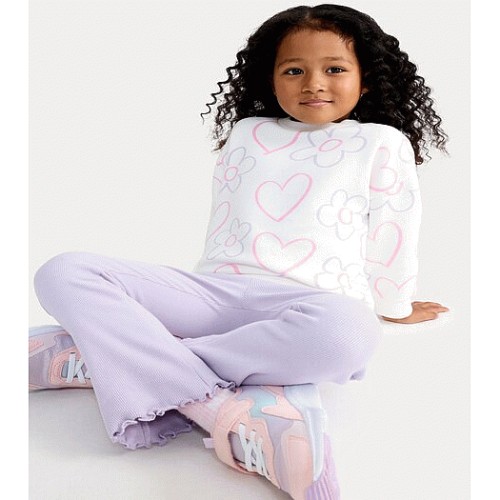 F&F Girls 2-Piece Cotton Rich Printed Sweatshirt and Leggings Set in Lilac