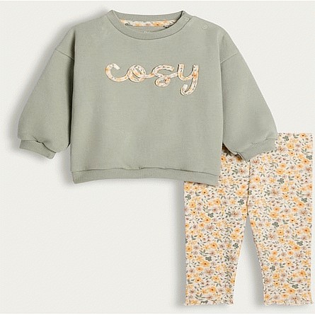 2-Piece Cotton Rich Cosy Floral Sweatshirt and Leggings Set in Green