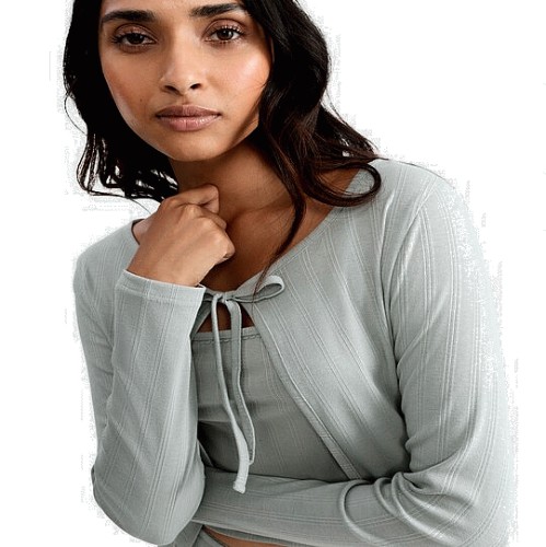 Rise by Zara McDermott 2-Piece Pointelle Pyjama Cami and Cardigan Set in Green