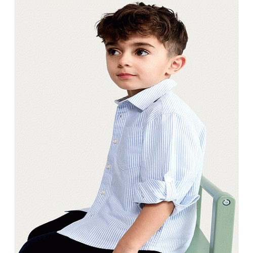 F&F Boys Pure Cotton Striped Long Sleeved Shirt in Blue