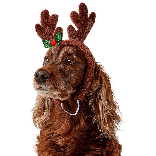 Christmas Glitter Ready To Sleigh Plush Antler Dog Headpiece Brown X Small Small