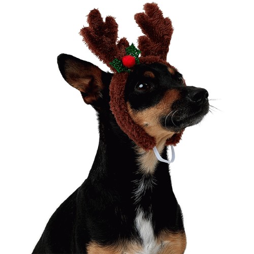 Christmas Glitter Ready To Sleigh Plush Antler Dog Headpiece Brown X Small Small