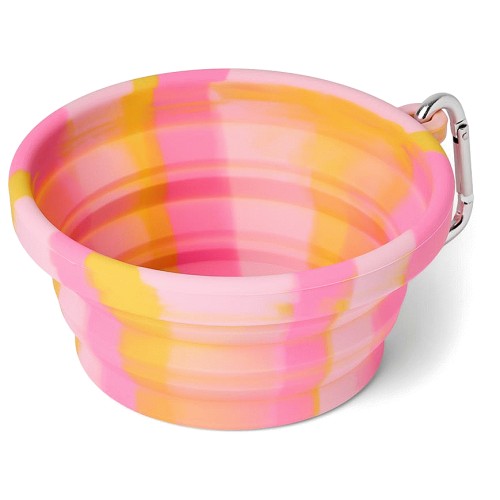 Pets At Home Sunny Daze Tie Dye Collapsible Dog Bowl Pink Large