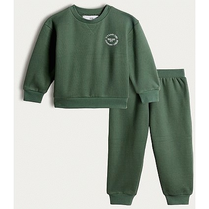 Boys Fleece Lined Printed Pyjama Set in Khaki