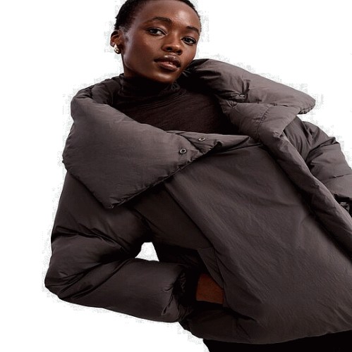 Padded Collared Oversized Fleece Lined Coat in Grey