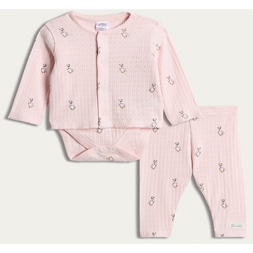 Peter Rabbit Jemima Puddle Duck 3-Piece Pointelle Cardigan Bodysuit and Leggings Set in Pink