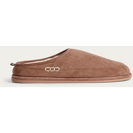 Fleece Lined Stitch Detail Mule Slippers in Tan