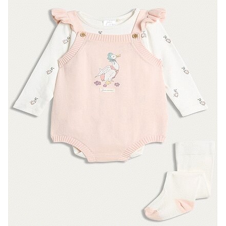 Peter Rabbit Jemima Puddle-Duck 3-Piece Pure Cotton Romper Bodysuit and Tights Set in Pink