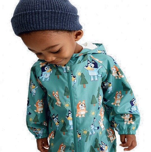 Bluey Hooded Fleece Lined Puddlesuit in Green