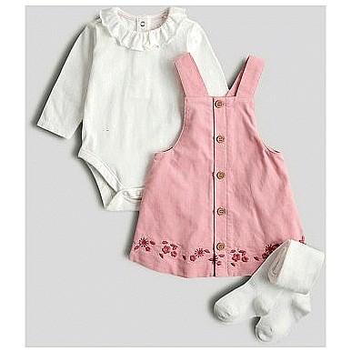 Pink Cord Pinny 3-Piece Outfit Up to 7.5lbs