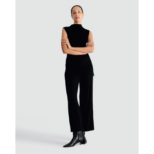 Polyamide Asymmetric Neck Sleeveless Top in Chocolate