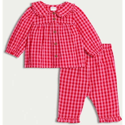 2-Piece Pure Cotton Gingham Pyjama Set in Pink
