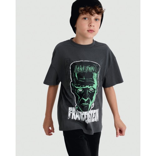 Frankenstein Print Pure Cotton Short Sleeved T-Shirt in Grey