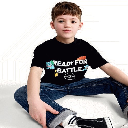 Pokemon Ready for Battle Pure Cotton Short Sleeved T-Shirt in Grey