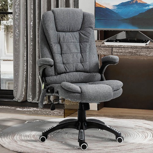 Grey Linen Feel Fabric Swivel Vibration Massage Office Chair