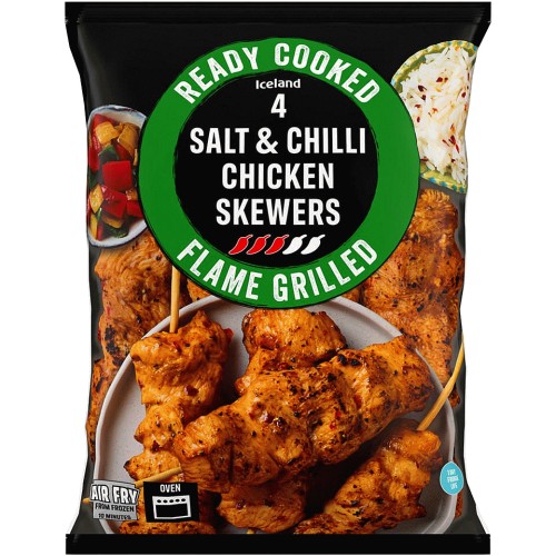 Ready Cooked 4 Flame Grilled Salt & Chilli Chicken Skewers
