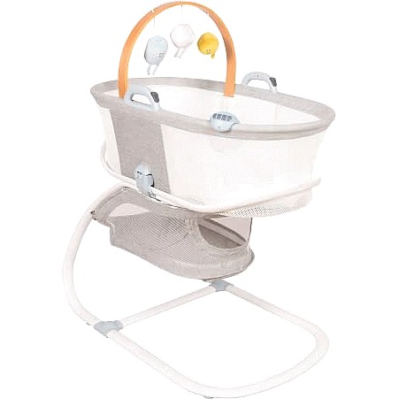 PurAir Crib | Breathable Moses Basket with Stand Includes Wooden Toy Bar & Baby Sleep Aid with Night light Vibrations Lullabies White Noise | Use As Bedside Crib or Detach & Move Baby Bed