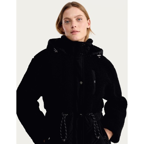 Active OUTDOOR Quilted Borg Panel Longline Coat in Black