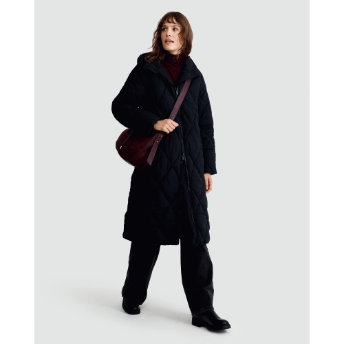 Quilted Longline Shower Resistant Zip Up Coat in Black