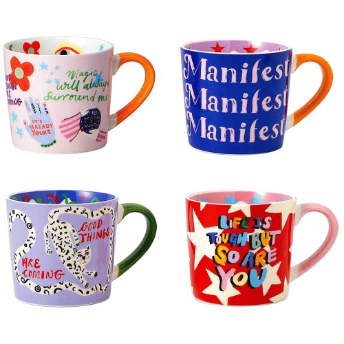 Set of 4 Mugs Manifest Mantras Manifest Manifest Life Is Tough Good Things