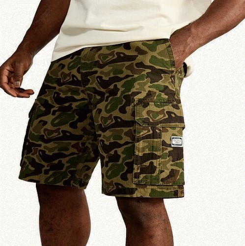 RDA Cotton Rich Camouflage Print Cargo Shorts in Green