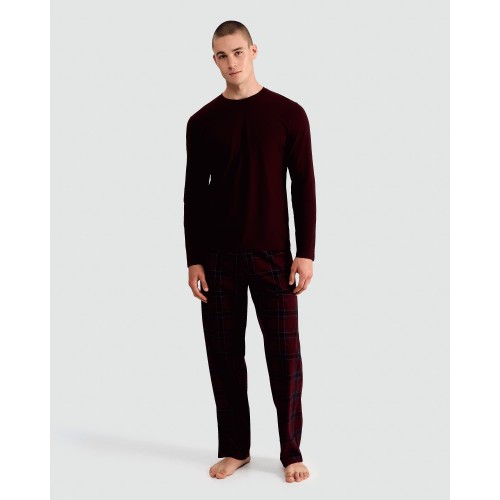 Long Sleeved Fleece Check Print Pyjamas in Burgundy