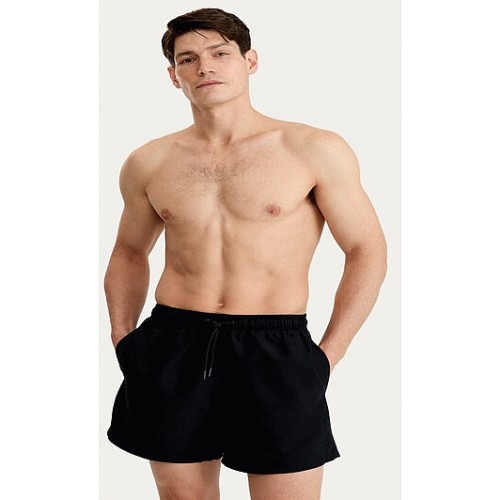 Drawstring Lined Swim Shorts in Black