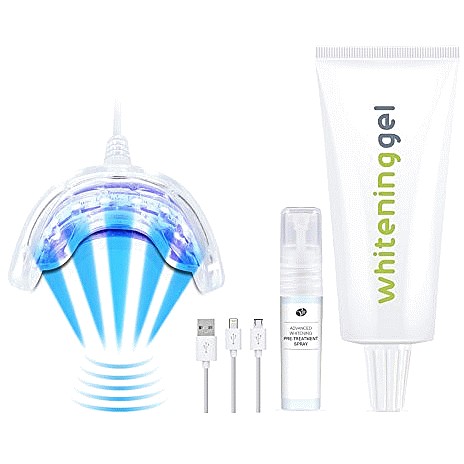 RIO Smile White Advanced Blue Light Teeth Whitening Kit LED Mouthpiece with Whitening Gel & Pre-Treatment Spray USB Powered Enamel-Safe At-Home Whitening System for Stains from Coffee Wine & More