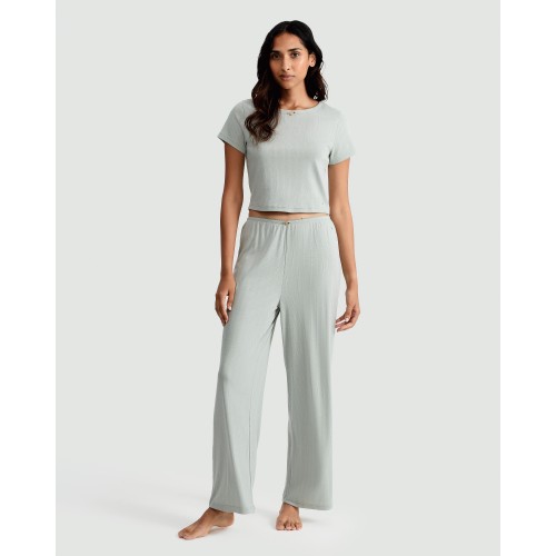 Rise by Zara McDermott Pointelle Wide Leg Loungewear Trousers in Green