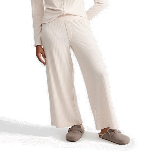 Rise by Zara McDermott Ribbed Wide Leg Pyjama Bottoms in Stone