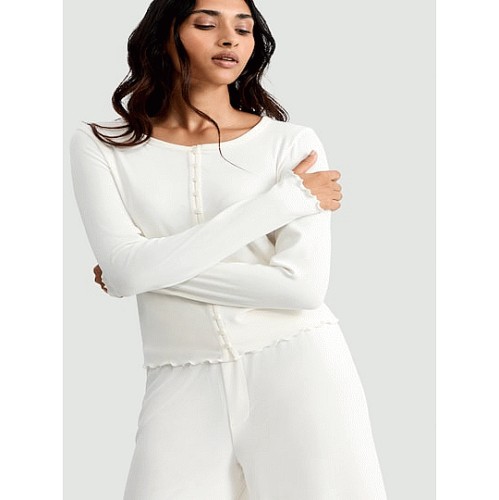 Rib Pointelle Henley Pyjama Set 8 Pink