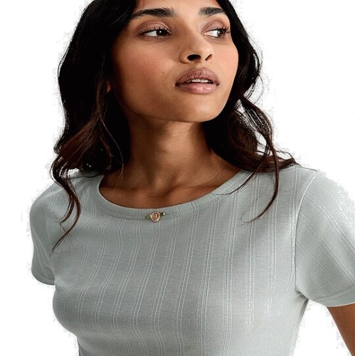Rise by Zara McDermott Pointelle Short Sleeved Pyjama T-Shirt in Green