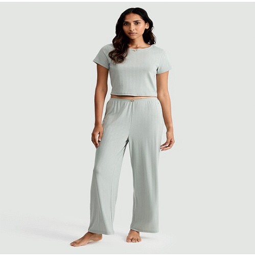 Rise by Zara McDermott Pointelle Wide Leg Loungewear Trousers in Green