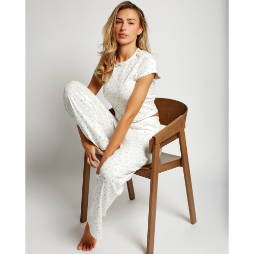 Rise by Zara McDermott Floral Print Pyjama Bottoms in White
