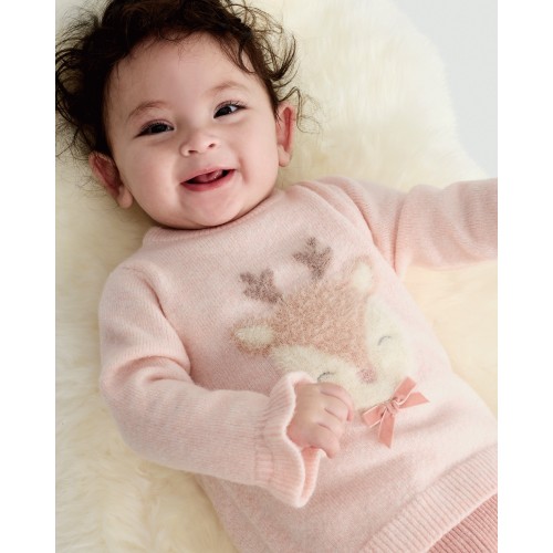 Fluffy Reindeer Jumper in Stone