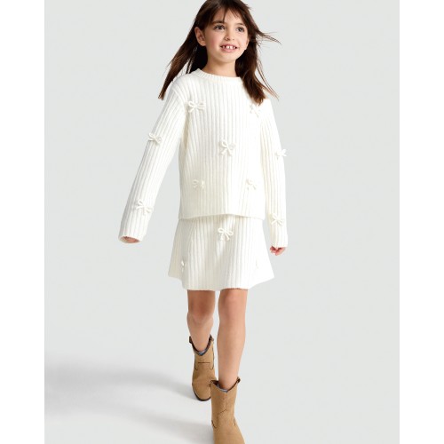 F&F Girls Ribbed Bow Detail Jumper and Skirt Outfit in Multi