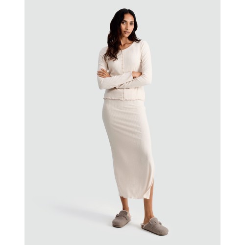 Rise by Zara McDermott Ribbed Midi Skirt in Stone