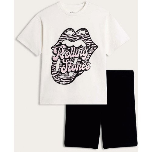 Rolling Stones 2-Piece Zebra Print T-Shirt and Cycling Shorts Set in Multi