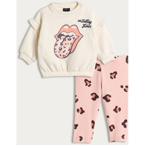 Rolling Stones 2-Piece Cotton Rich Sweatshirt and Leggings Set in Pink