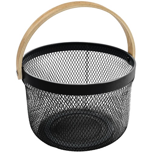 Black Round Basket With Birch Wooden Handles