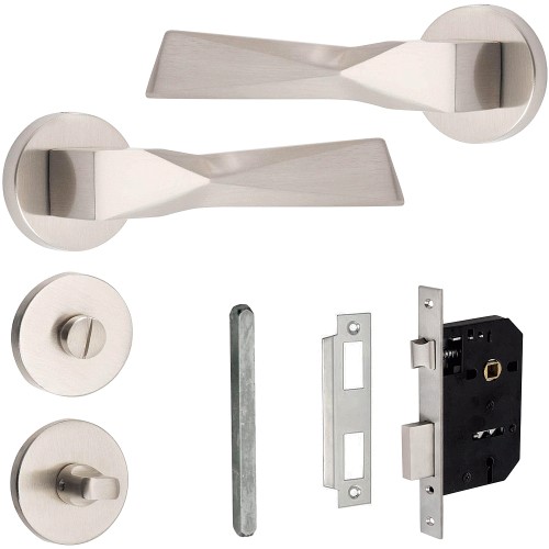 Modern Aura Satin Nickel Premium Bathroom Door Handles