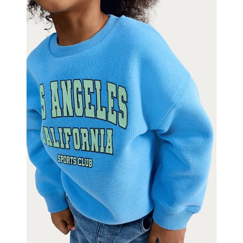 F&F Boys Cotton Rich Los Angeles California Print Sweatshirt in Blue